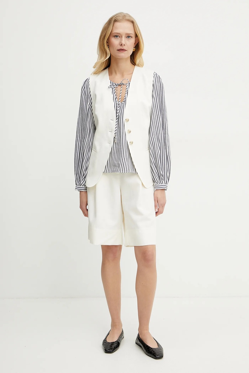 Шорты с примесью льна BOSS Orange женские цвет бежевый однотонные высокая посадка 50546217 4952638