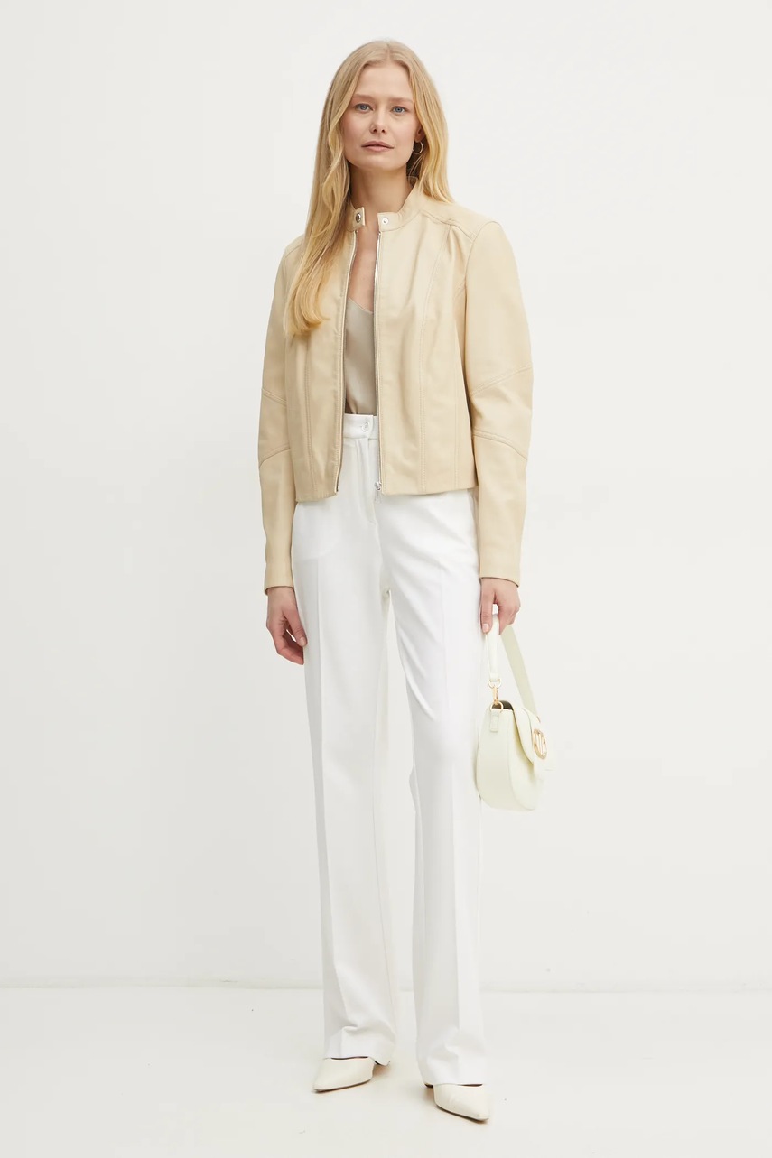 Кожаная куртка Boss Orange женская цвет бежевый переходная 50522033 4824749
