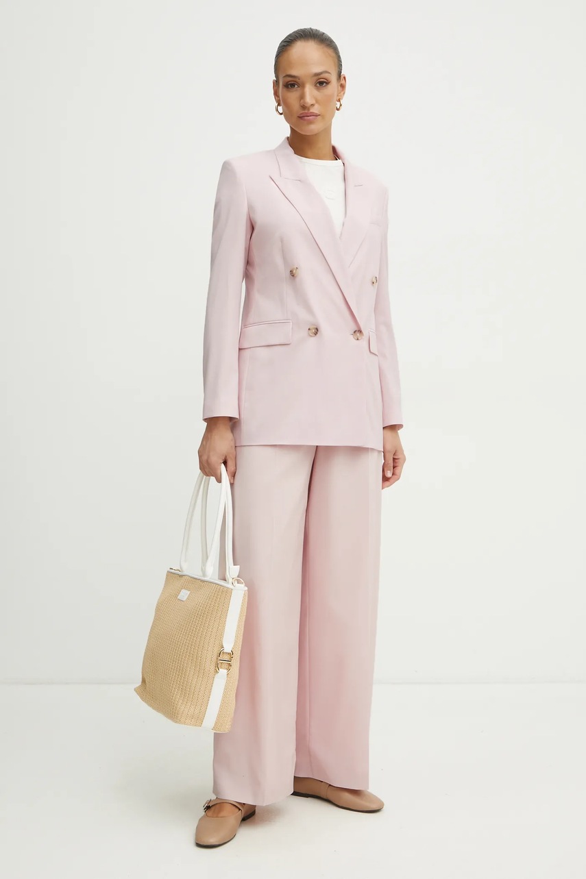 Шерстяные брюки BOSS женские цвет розовый широкие высокая посадка 50537404 4869215