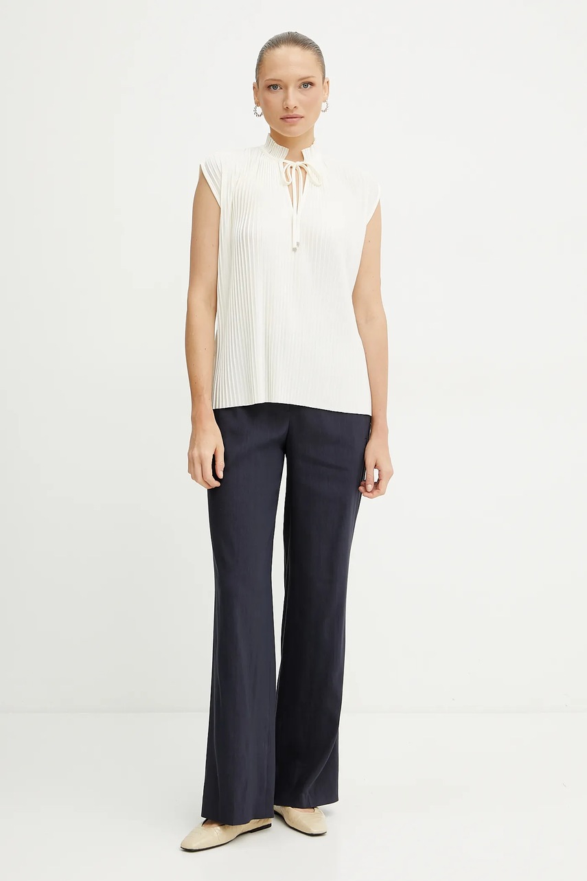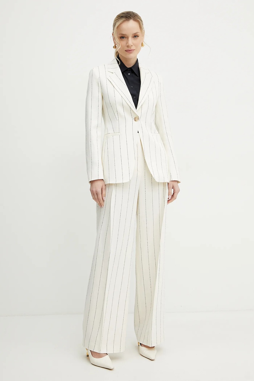 Брюки Boss Orange женские цвет бежевый широкие высокая посадка 3738435