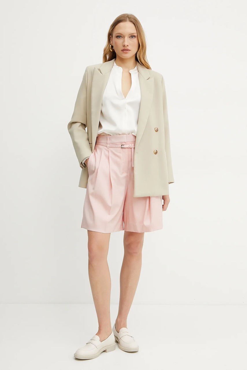 Шерстяные шорты BOSS женские цвет розовый однотонные высокая посадка 50537395 4873842