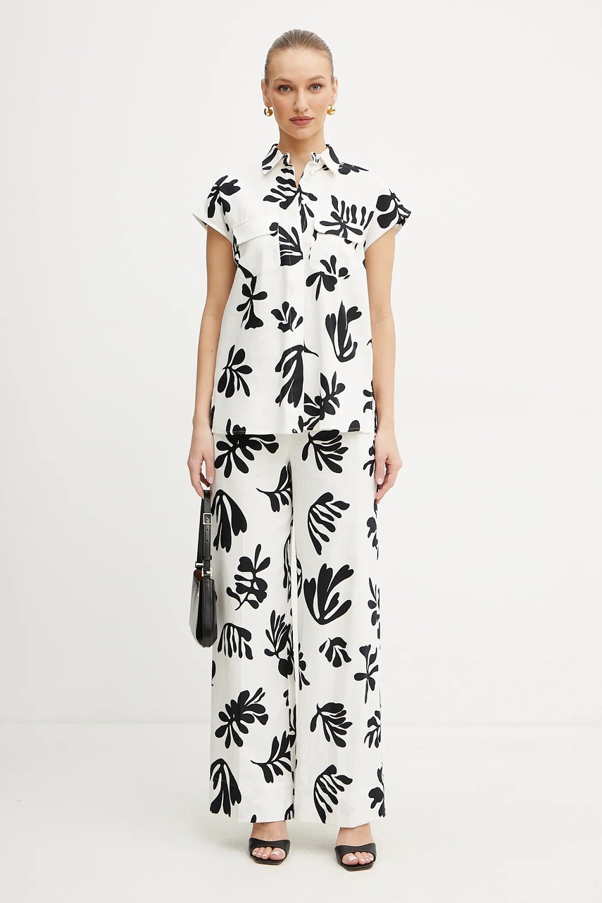 Льняные брюки Marella ANTIOPE женские цвет белый широкие высокая посадка 2513131222200 5061073