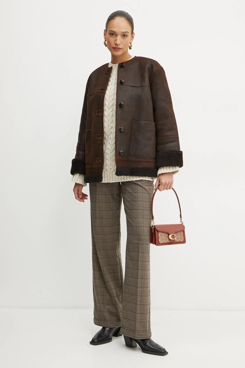 Кожаная куртка Weekend Max Mara женская цвет коричневый переходная 2425416013600 4714863