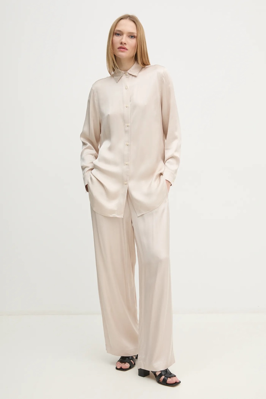Брюки Calvin Klein Jeans женские цвет бежевый широкие высокая посадка J20J223921 4291668