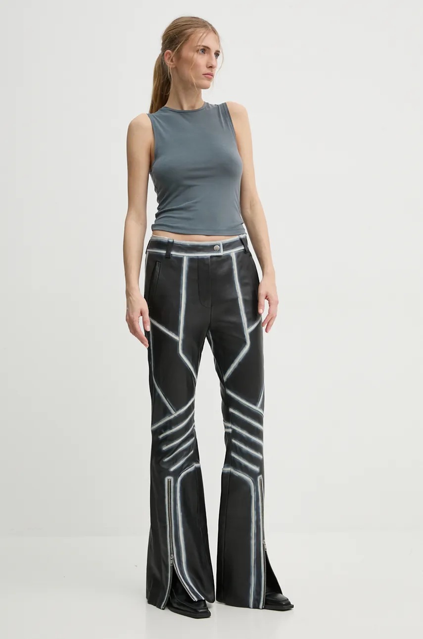 Кожаные брюки Stand Studio Moto Trousers Detailed женские цвет чёрный клёш высокая посадка 62287-7030 4679653