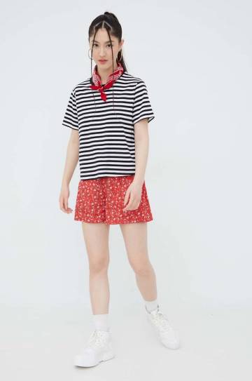 Шорты Sisley женские цвет красный с узором высокая посадка 2347657