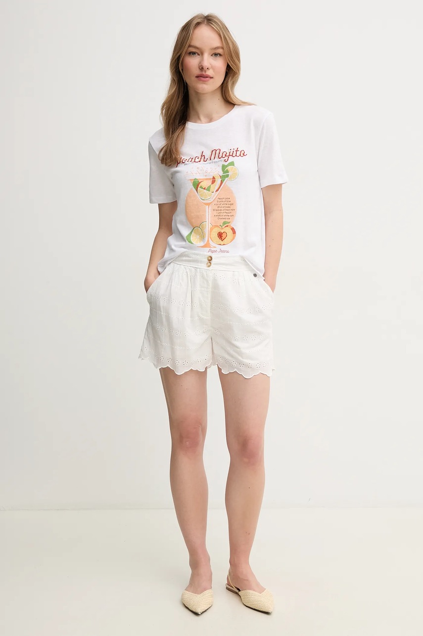 Хлопковые шорты Pepe Jeans DOUCE женские цвет белый однотонные высокая посадка PL801158 5057224