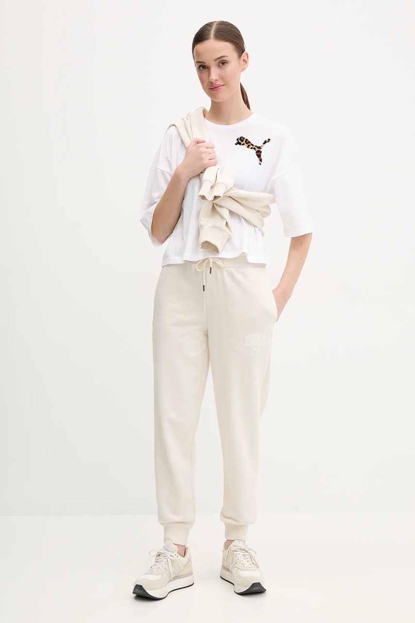 Спортивные штаны Puma женские цвет бежевый с принтом 685037 4953334